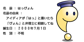 名前の由来は、『 アイデアが「はっ」と湧いたら「ぴょん」と弁理士に相談してね』。