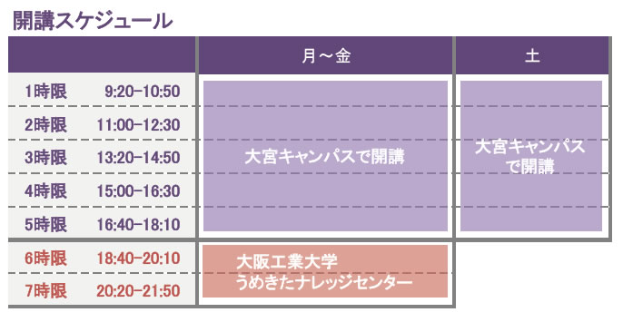 - 当然、業務を終えてから通学することになるわけですが、本学には大阪市旭区の大宮キャンパスのほか、 サテライトキャンパスが梅田にあるので通いやすかったですね。平日の夜は梅田で1~2科目受講し、 土曜日は大宮キャンパスで朝から5科目受講していました。