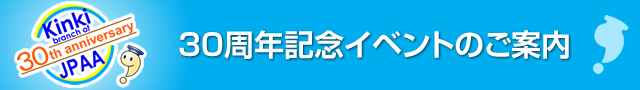 近畿支部では、30周年を記念して様々なイベントを企画しています。近畿に関わりの深い企業の方々、近畿支部の運営と関わりの深い団体の方々の協力を得て、記念セミナー、記念式典、祝賀会等のイベントの実施を準備しています。30周年を機に近畿支部の活動がより一層活性化されることで、皆様の事業活動の推進の一助になることを願っております。