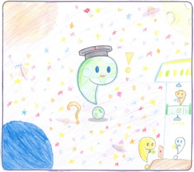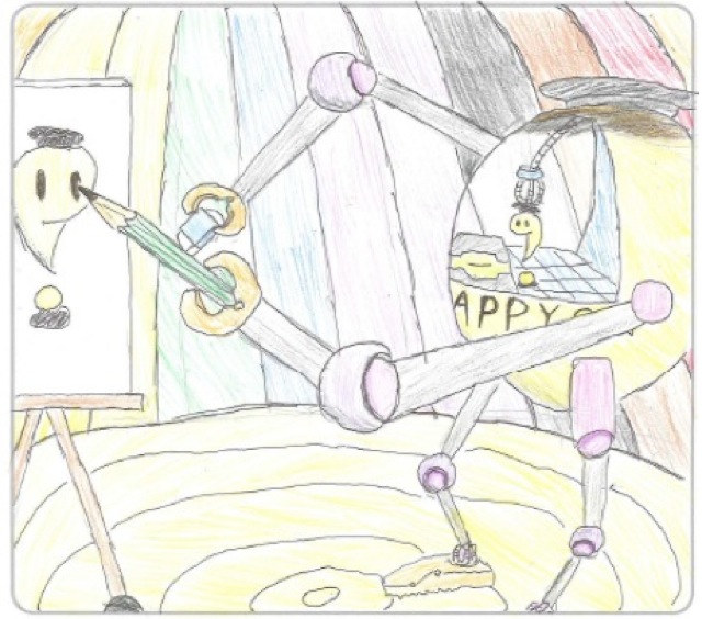 - ひとこと:はっぴょんが発明をしている発明室をイメージしてかきました。