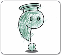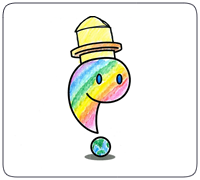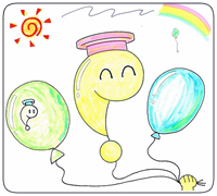 疑問やひらめきを持たれた皆さんを力強くサポートする弁理士のシンボルとして、「?」「!」「握りこぶし」をモチーフに作成された、親しみやすいキャラクターです。