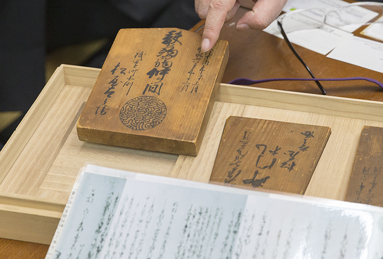 - 商いを始めましたのは享和年間(1801年~1804年)から文化年間(1804年~1818年)にかけてです。これをご覧ください。当店が株元として「麩蒟蒻仲間」を結成しましたときの印札で、文化十年(1813年)閏十一月と焼き印が押されています。