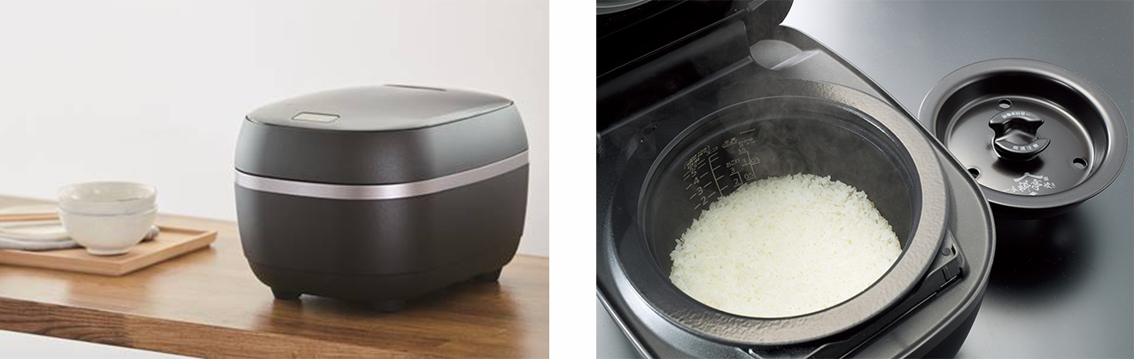 - このモデルは通常5.5合炊きですが、釜の中に「中ぶた」を入れ、炊飯する空間を変えることで、1合という少量でもおいしく炊けるモードを搭載しています。その機能に「一合料亭炊き」と名付け、文字商標として登録しました。また、泡でお米を包む当社独自の炊き方にも「土鍋ご泡火(ほうび)炊き」と名付け、同じく文字商標として登録しています。