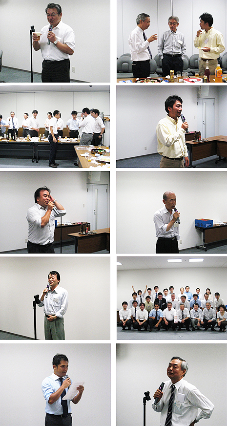最後は、井内龍二副支部長に閉会のご挨拶をいただいて、会はお開きとなりました。今回は、連日の猛暑ではありましたが、33名の方々にご参加いただき、和気あいあいとした、活気のある意見交換が行われ、有意義で楽しい時間を過ごすことができました。また、近畿支部に設置された募金箱の紹介がなされ、多くの募金をいただきました。