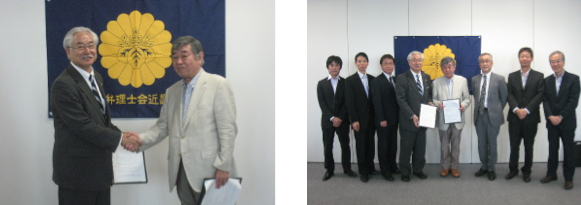 内 容 | 日本弁理士会近畿支部は、日本弁理士会と一般社団法人中小企業診断協会とが平成26年(2014年)4月21日に締結した「知的財産を活用した企業経営による産業振興のための協力に関する協定」に基づき、一般社団法人大阪中小企業診断士会と連携に関する詳細を定めた覚書を締結しました(締結日:平成26年9月29日)。締結式には、両会代表をはじめとした連携担当者が出席し、今後に向けた活発な意見交換を行いました。本締結により、両会が協動して円滑な連携を図り、弁理士と中小企業診断士とが相互の知識を交換して相互の能力を高めることで、企業経営に関する支援及び知的財産に関する支援のさらなる向上を目指していくこととなりました。 |