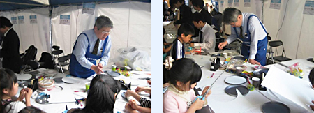 担当 | 光明寺大道弁理士、中山 聡弁理士 | コメント | 京都駅ビル15周年のイベントの一環として開催された、京都科学屋台ネットワーク「KIDS DAY 遊んでまなべる、遊びエキびる」に参加しました。場所は、京都駅の中央改札口付近に設けられた特設ブースでした。好天に恵まれたこと、京都で一番大きな駅が会場だったこと、普及制度委員会の授業以外に京都大学等の体験コーナーや人気キャラクターのステージショーも同じ場所で行われていたこと等の事情が重なり、当日はかなりの人出でした。 今回、光明寺先生と二人で、14:00から17:00まで「ビー玉を使った発明工作授業」を担当しました。授業専用の独立スペースが無かったこと、参加者の殆どが小学校低学年のお子さんであったことから、通常とは違うスタイルで行いました。まず、お子さんがいつでも授業を受けられるように、個別かつ参加された順番で、授業の説明を行いました。また、授業の意図を分かりやすく伝えるため、完成品を見せながら説明を行いました。さらに、道具を使い慣れていないお子さんのために、画用紙を切る等の事前準備を行いました。実は、今回が私の工作授業のデビュー戦だったのですが、通常の工作授業に対する中途半端な経験・知識がなかったため、色々柔軟に対応できたように思います。 お子さんをなだめながらも、できるだけお子さんに主体的に工作させた親御さん、飽きてしまったお子さんに代わって工作していた親御さん、妹ちゃんに「発想力が大切だよ」とアドバイスしていたお兄ちゃん(結果、妹ちゃんの方が丁寧に工作していました)等、小学校で行われる工作授業では見ることができないであろう「家族模様」を見ることができました。駅前でスペースがなく、多くのお子さんに参加していただけなかったという残念な点はありましたが、参加されたお子さんには楽しい授業を体験していただけたと思います。 |