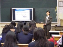 ![]() ![]() 興味津々の生徒達に講義を行う講師陣 (左写真 三宅 康雅 弁理士、右写真 立川 伸子 弁理士) |