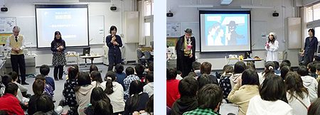 担当部署 | 日本弁理士会近畿支部 知財制度普及委員会 | コメント | 今回は、滋賀県の東部に位置する東近江市にある八日市西小学校に行ってきました。この八日市西小学校は、ここ7年間にわたって「知的財産特別授業」を毎年申し込んで頂いているリピート校であります。校長先生は、平成23年4月に八日市西小学校に赴任され、毎年行っている「知的財産特別授業」を楽しみにされていました。 「知的財産特別授業」の進行は、司会役を立川弁理士、博士役を伊原弁理士、怪人役を私が担当しました。前に出てきて参加してもらうとき、初めは手を挙げる児童は少なかったのですが、授業が進むにつれ参加希望者が増え、後半は楽しい雰囲気の授業になりました。私は、怪人役をすることが多く、「コピー商品は安くていいよね。」と言って児童の反応を見るのを楽しみの一つとしています。今回、このときに手を挙げる児童が少なかったですが、「発明を大事にする気持ちがあるのかな?本当はどうなのかな?」といつも考えています。 「知的財産特別授業」は、発明について児童と一緒に考えるよい機会であり、参加する児童に、物をつくる楽しさを感じてもらい、また自分で作ろうとする気持ちを持ってもらいたいという思いでもって参加しています。 最後に、八日市西小学校は、専門家などによる出前講座に積極的な学校であり、その一つとして「知的財産特別授業」を申し込まれており、「知的財産特別授業」と別に「発明工作」も行っていることを話してきました。 |