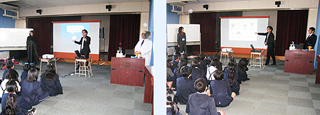担当部署 | 日本弁理士会近畿支部 知財制度普及委員会 | コメント | 今回、私達が訪れたのは大阪市立大桐小学校です。 淀川の下を潜る地下鉄今里筋線に乗り、だいどう豊里駅改札口に集合いたしました。 6年生3クラスを三コマ連続というスケジュールのため集合時間が8時30分と早く、久しぶりに通勤ラッシュに遭遇いたしました。 さて、大桐小学校は静かな住宅街の中にありますが、今回の講師の一人である、三宅弁理士の母校ということで初めての土地ながら迷わずに向かうことができました。 小春日和の中駅から歩くこと10分、小学校に到着するころには体も十分温まって、児童達との初顔合わせに期待と不安が高まります。 今回授業を受けてくれる6年生は、ひとクラス29名前後と少人数で構成されており、絨毯の敷かれた床に直接腰をおろした児童達は、興味津々と言った表情で私たち講師陣を見上げてきます。 弁理士という職業の紹介や、エジソンの発明といった導入部には真剣に耳を傾けてくれていましたが、誰か前に出てきて下さいと呼びかけるとなかなか手が挙がりません。 それでも、友達を誘って二人連れとなると恥ずかしそうにしながらも前に出てきてくれたのでホッといたしました。いったんきっかけができると後は割合スムーズに参加してくれました。そして、クイズタイムの頃には最初の緊張もほぐれていつもながら盛り上がりの内に授業を終えることができました。 一方、私達講師陣も三コマ連続授業という長丁場ながら、司会、博士、怪人の役を一人一回ずつローテーションで担当いたしましたので、毎回適度な緊張感を持って授業を行うことができました。私は今回が司会初挑戦でしたが、児童たちとのやり取りがとても楽しく、やみつきになりそうです。 また、先生から弁理士試験についての質問があったからでしょうか、授業が終了した後に女子児童三人組が「何年ぐらい勉強したら合格できますか」と目をきらきらさせながら近づいてきてくれたり、弁理士の仕事をもう少し詳しく知りたいと言ってノート片手に質問しに来てくれた児童もいました。 この授業をきっかけに、「弁理士」や「発明」という言葉を覚えてくれて、また将来の職業の選択肢の中に「弁理士」が入ってくれると嬉しく思います。 |