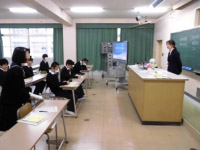 今回、私が訪れたのは名谷駅からバスで5分、高台に建つ兵庫県立須磨東高等学校です。同校からは、毎年知財授業のご依頼を受けており本年で5回目の訪問となります。様々な職種の社会人を招いて行われる特別授業として位置付けられているもので、弁理士の他に薬剤師、助産師、兵庫県の職員の方々が講師として来られていました。 同校では、1年生から「リーガルマインド基礎」を学ぶ機会が設けられており法律効果を発生させるための事実認定の練習から始まり、3年生ともなると模擬裁判も行うそうです。 授業は「知的財産権と弁理士の仕事」について講義形式で行いました。内容としては、生徒に一部ずつ配布した「弁理士info」を参照しながら知的財産権の概要について説明し、話題となった知財関連の紛争や事件を紹介いたしました。その後企業の新商品開発と知財による保護の実例として「きき湯」のスライドを上映しながら講義を行いました。一段高い場所から生徒を見下ろす形での講義となり緊張いたしましたが、生徒達の怖いくらいの真剣なまなざしに、7限目の授業とは思えないほどの熱意を感じました。特に、発明の発掘段階から出願・権利化段階、権利化後の権利維持・活用・侵害対策等、それぞれの場面での弁理士の果たすべき役割について説明を始めると生徒達が一斉にメモを取り始めました。様々な仕事を知ることを目的とする特別授業の一つとして「弁理士」という職業への興味の深さが感じられました。 |