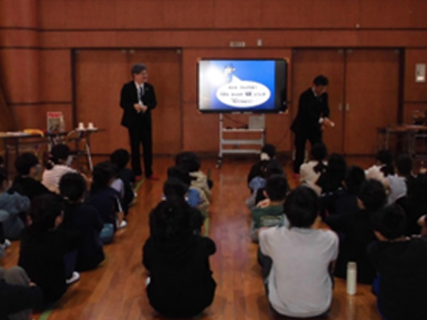神戸市西区西神ニュータウンの中央部にある静かな小学校です。理科実習に力を入れておられ、東門に入ったところには温州ミカンの実が大きく実っていました。2クラス合同の多目的ホールでの授業でしたが、翌週から修学旅行とのことで規律よく参加していただけました。 弁理士について知っている児童はいなかったものの、発明については「何か新しいもの」という答えが返ってきました。日ごろから興味をもっておられた様子。 サラカップル、カタシャンボトル、肩ブレラの順に不便を解決するアイデアを出してもらい、実際に試してもらいました。活発にアイデアが出され、時間いっぱいまで試作が続きました。発明することのきっかけを体験してもらえたと思います。 寸劇では、当初、怪人Xから安い模倣品を買うという答えが大半だったのが、怪人Xが退散した後は、F博士の真正品を選ぶという意見が多数になっていました。発明を保護する大切さを理解してもらえたことは喜ばしかったです。 クイズのコーナーでも、全員が元気よくサイン(日本の発明なら○)を出してくださり、最後まで生き生きした授業をすることができました。 当日は見学日でもあり、保護者の方をちらほらとみかけました。本授業のような活動への理解が深まったことと思います。 |