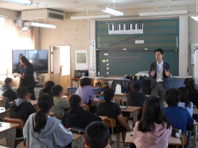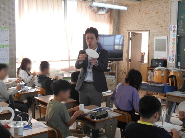 コメント | 堺市立日置荘西小学校は、南海高野線の「初芝」駅から徒歩10分ほどの場所にあり、決して田舎ではないのに大きな運動場のある小学校でした。 昨年度は「君も今日からエジソン」の知財授業を実施させて頂いておりますが、本年度は片手でもてるかな」の発明工作授業を行いました。この発明工作授業は、2つの紙コップ、2枚の紙皿、及び2本のストローを用いて、ポップコーンと飲料を入れられるような片手で持てる容器を工作するものです。 児童達は大変熱心に取り組み、個性的な作品が沢山作られていました。動物を模したデザインの容器を作成したり、片手どころか太腿にセットして手ぶらに出来るように工夫したり、多種多様な容器が作られ、児童達の創作力の高さに感じ入りました。また、作品の発表者を募集したときにも、手を挙げてくれる児童が沢山おり、熱心に工作をしてくれていたのだと感じました。 授業の最後に、飯田淳也弁理士が、万博の空飛ぶクルマの説明において、将来は児童達の中にも空飛ぶクルマに関する仕事をしている人がいるかもしれないねと児童達に語りかけていました。熱心にかつ巧みに工作していた児童達です。その様な開発者が誕生するかもしれないという楽しみな気持ちになりました。 |