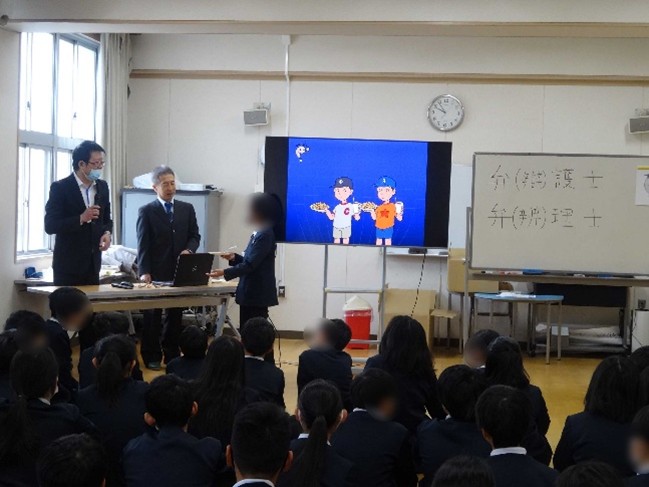 コメント | 今回訪れた大阪市立巽小学校は、大阪市の南東部に位置する生野区にあります。 今回の知的財産特別授業では、「君も今日からエジソン」を行いました。授業の司会進行役は、齊藤弁理士が務めました。 最初に弁理士と弁護士の相違について説明した後、「サラカップル」に関し、子どもたちから様々なアイデアを発表いただきました。当方が期待していたアイデアの他、より創意工夫がなされたアイデアや、当方が思いつかないような奇抜なアイデアがありました。 次に、発明を守る仕組みについて紹介するための寸劇を行いました。寸劇では、鈴木弁理士がエフ博士役を演じ、担任の先生が怪人X役を演じました。担任の先生には、当方から事前に提示していた台本を確認いただいていました。そのため、担任の先生に怪人Xを熱演いただくことができました。寸劇について、子どもたちから好評いただけたと思います。 寸劇を観た子どもたちから、製品の価格がやっぱり安い方がいいという意見が多く出されました。しかし、それでも産業の発展のためには製品の模倣はやってはいけないということを、子どもたちに認識いただけたと思います。 最後に、身近な発明に関するクイズを行いました。乾電池やシャープペンシルなどが日本人ではなく外国人が発明したものだと思っていた子どもたちが意外に多かったです。そのため、子どもたちからは「勉強になった」との感想をいただきました。 今回の授業を通して、身近な発明の存在、発明を守る仕組み、弁理士という職業などについて、子どもたちに考えていただく良いきっかけになったと思います。 |