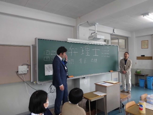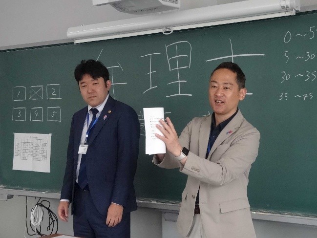 神戸常盤女子高等学校は、山陽電鉄神戸高速線 西代駅から坂道を15分程上った閑静な住宅地にありました。1年生の21名と20名が発明工作授業(ペーパータワー)に参加してくれました。 授業の司会進行は野呂弁理士が行い、サポート役を中村弁理士が行いました。生徒が来る前に席の配置や配布資料の設置、弁理士の説明などの板書などの準備を行い、授業が始まったら野呂弁理士によるペーパータワー作成のルールの説明が行われました。その後、25分ほどで生徒たちによるタワーの制作が行われました。 使用する材料はA4用紙40枚、はさみと接着テープのみで、作成したペーパータワーの高さを競うルールです。1グループ4~5名の各グループに分かれた生徒達は、それぞれのアイデアを出し合いながらタワーの作成を始めました。出来上がったペーパータワーの最上部に「カップヌードル」を置いて、10秒間その状態を保持できればクリアとなります。最初は静かに工作を始めた生徒達ですが、時間がせまった最後の「あと5分」「あと30秒」「5、4、3、2、1・・終了~!」のかけ声とともに大盛り上がりでした。「デザイン賞もあります」と最初に説明したため、装飾的な要素を持つ素敵な構造のタワーを作成したグループもありました。どのチームも最初にしっかり話し合い方向性を決めてチャレンジができており、チームワークの重要性が分かる良いワークショップになったと思います。 最後に司会の野呂弁理士が、知的財産や弁理士について丁寧に説明し、現在開催中の大阪・関西万博の紹介も行い、授業を終了しました(約10分)。今回の授業を通して、特許(発明)や意匠(デザイン)、商標(ロゴやマーク)、さらには弁理士にも興味を持っていただけたと思います。 |