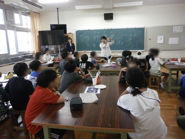 今回訪問した野洲市立篠原小学校は、琵琶湖の南東部に位置し、南北を東海道新幹線と東海道本線に挟まれた、鉄道の走行音が日常に溶け込む趣のある場所にあります。今回は、6年生26名を対象に、発明工作授業「片手でもてるかな」を実施しました。 授業ではまず、身の回りの発明品に目を向けてもらう導入を行った後、「ジュースとポップコーンを片手で持ちたい」という課題に対して、自分なりの工夫を凝らしたアイデアを考えてもらいました。児童たちは、紙皿や紙コップ、ストローなどの材料を手に取りながら、友だちと相談したり、試作品を何度も作り直したりと、積極的にチャレンジしていました。 ストローを支柱にして紙皿を2段重ねにした大がかりな発明品のほか、紙皿を折り曲げてタコスや餃子のような形状に加工したもの、紙コップを通常とは逆向きに使ったもの、紙皿を使わず紙コップのみで工夫したものなど、ユニークな発明品が多数生まれ、児童たちの創造力と柔軟な発想に驚かされました。中には、他の児童のアイデアと比べて自分の作品を恥ずかしく感じる児童もいましたが、その児童も紙皿の端を折り曲げてポップコーンがこぼれないようにしたり、開ける穴の形を工夫したりと、自分ではおそらく無意識のうちに立派な発明を生み出していました。不便を解決するのが発明であり、これも立派な発明だよと伝えると、驚きながらも嬉しそうにしていた姿が印象的でした。 授業後には、今回の課題とは異なる身近な不便を見つけ、それをどう解決できるか考えて講師に積極的に話しかけてくれる児童もおり、弁理士として非常に嬉しく感じました。今後も、自由な発想で、未来の便利や楽しさを生み出す力を育んでいってほしいと願うばかりです。 |