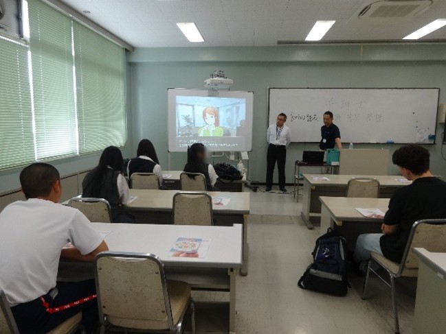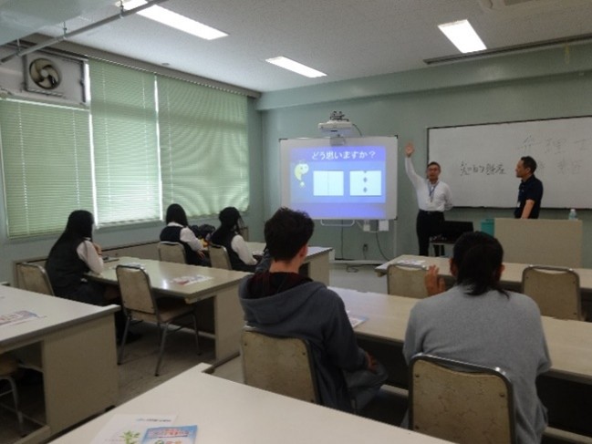 阪急武庫之荘駅からバスで10分程度の広大な敷地を有する兵庫県立武庫荘総合高等学校へ「知的財産特別授業」に行ってまいりました。 最初に、学校側から知財授業の概要説明があった後に講師陣の自己紹介を行い、知的財産のプロフェッショナルである弁理士について簡単に説明しました。次いで、『おにぎりパック特許権物語』の50分版シナリオに従って、特許権の取得から特許権侵害を巡る攻防まで寸劇形式で説明を行いました。主講師の弁理士役は渥美弁理士、補助講師は中村弁理士が担当しました。生徒にとって特許請求の範囲という用語は難しく感じられたようですが、おにぎりパックは身近にある題材であったため、侵害事件のパートが進むにつれて理解が深まっていったようです。また、侵害事件の事例に基づいて、侵害しているという特許権者の主張と侵害していないと反論する社長の主張のどちらが正しいと思うか、生徒に考えてもらうことによって、特許権を利用することの意義を伝えることができたと感じました。 授業の中では特許権に関する難しい用語もたくさん出てきましたが、熱心に聴講する生徒も多く、この授業を通して特許をはじめとする知的財産権の意義を理解し、知的財産制度や弁理士という職業に少しでも興味をもってもらえたと思います。 最後に司会の渥美弁理士が、現在開催中の大阪・関西万博の紹介も行い、授業を終了しました。 |