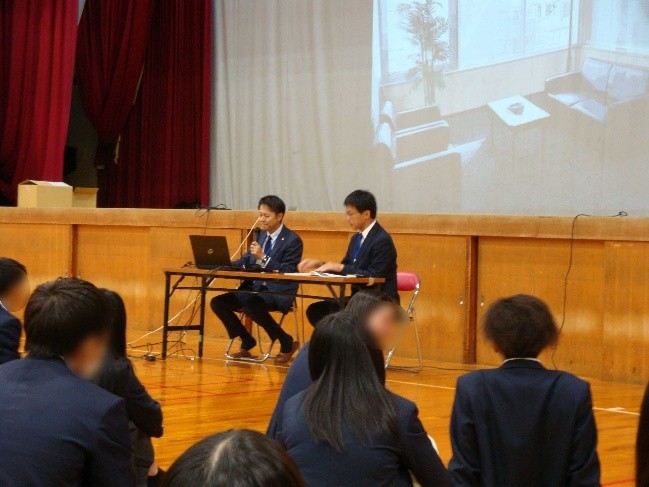 兵庫県立伊川谷高等学校は神戸市西区にあり、明石市や三木市にほど近い場所にあります。兵庫県立伊川谷高等学校は近く近隣の高校との統合が決まっており、現在は2年生、3年生が在籍しています。この高校では、様々な分野の専門家が授業を行い、実践的な知識を得るとともに、進路選択の参考としているそうです。その一環で、日本弁理士会に授業の依頼をいただきました。 授業では、最初に身近な製品に特許権などの知的財産権が存在すること、知的財産のプロフェッショナルである弁理士について簡単に説明しました。次に『おにぎりパック特許権物語』を題材に、特許権の取得から特許権侵害を巡る攻防までを、寸劇形式で説明しました。なお、主講師の弁理士役は後弁理士、補助講師は中野弁理士が担当しました。 寸劇では、特許請求の範囲の記載が重要であること、特許を侵害しているかどうかの判断の方法、自分が特許権を持っていても他社の特許権の侵害になり得ることなどを説明しました。知財に初めて触れた生徒には、内容が少し難しかったかもしれません。ただ、興味を持って聞いてくれた生徒が多く、授業の最後では、鋭い質問もしてくれました。 この授業をきっかけに、特許権をはじめとする知的財産権に関心を持ち、今後の人生に役立ててもらえたらと思いました。 |