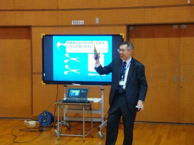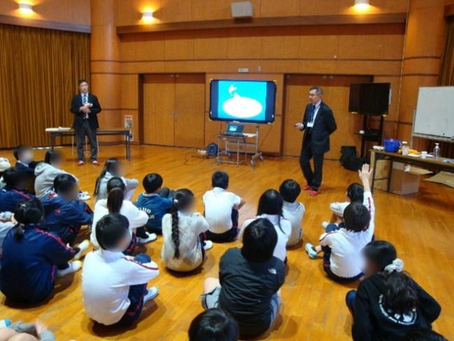 神戸市の西神ニュータウンにある美賀多台小学校に知財授業に伺いました。とてもきれいな小学校で、校舎が明るい陽射しに映えていました。授業では、弁理士について知っている児童はいなかったものの、発明については、思い思いの言葉で、どのようなものかを説明してくれて、日ごろから、発明や技術、工夫に関心をもっているようで、嬉しかったです。寸劇を交えて、特許権の意味や、弁理士の役割を伝えました。寸劇の前半では、怪人Xの安い模倣品を買うという回答が多かったものの、最後には、F博士の真正品を買うと答える声が多数となり、発明を保護する大切さをわかってくれたようで嬉しかったです。最後のクイズコーナーでは、歴史的な有名発明について、児童たちが、よく知っていて、驚きました。授業後に、退校の途中で、幾人かの児童が、わたしたち弁理士2人に手を振って、「さようなら」と声をかけてくれたのが印象的でした。児童たちのために、さらに授業の腕に磨きをかけたい思いを深めました。 |