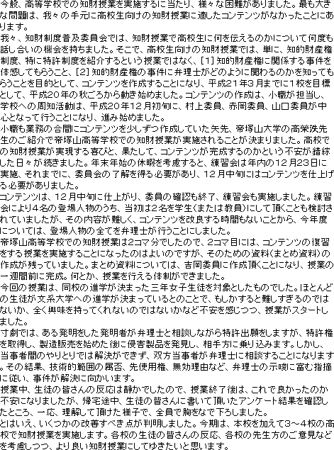 「知財授業報告書」 大阪府帝塚山高等学校
