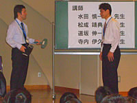 ところで、先生方にも、寸劇中のデパートの店員役を勤めていただいたり、質問コーナーで積極的に手を上げていただいたりと、大変お世話になりました。上述の「真摯」という言葉は、先生方の態度にもあてはまるのではないかと思います。先生方の生徒達に接する態度は、適度にフランクで適度に厳しいものであり、スタッフも勉強させていただきました。