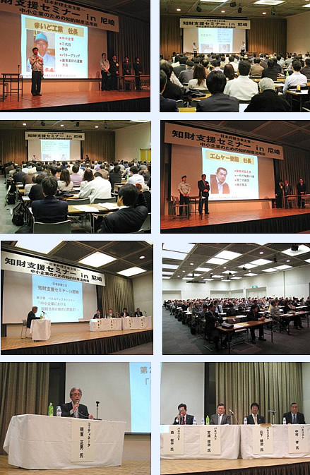 概 要 | [第1部] 第1部では、弁理士有志による寸劇「知財の『活用』って何?」が行われた。この寸劇は、第1幕が「知財の活用(基本編)」として「独自開発と独占実施による事業展開と知財戦略」について、第2幕が「知財の活用(応用編)」として「共同開発やライセンス等の知財戦略」について、知財立国サポート委員会から選出された総勢10名の有志弁理士が2幕に分かれて熱演した。 第1幕では、従業員30名の歯車製造を行う中小企業の社長役、開発担当の従業員役、社長の友人の弁理士役、大企業の知財担当者役、地方銀行の融資担当者役の5名が登場し、中小企業の社内で知財の活用に悩む場面、知財の自社実施を前提に行うアイデア出しを行う場面、大企業へ商品を売り込む場面、銀行から融資を受ける場面、社内活性化に知財を利用する場面、と展開した。第2幕では、下請け脱却を図る中小企業の社長役、開発担当の従業員役、弁理士役、大学教授役、ベンチャー企業の社長役の5名が登場し、下請け脱却を図るために他社技術を導入する場面、アライアンス先を検討する場面、と展開した。 [第2部] 第2部では、「中小企業における知財活用の現状と問題点!」というテーマでパネルディスカッションが行われた。コーディネータは板東正男弁理士、パネリストは、株式会社ナカムラ代表取締役 中村孝氏、株式会社ヤマシタワークス代表取締役 山下健治氏、ハードロック工業株式会社 宮浦俊治氏、及び、森收平弁理士の4名であった。ハードロック工業株式会社からは代表取締役の若林克彦氏が出演予定であったが、直前になって事情により出演が困難となり、急遽、ハードロック工業株式会社から代役として宮浦俊治氏に御出演頂いた。 パネルディスカッションでは、各パネリスト企業から、商品概要や会社概要を御説明頂いた後、第1部の寸劇の感想、出願・登録件数の状況、特許出願するための発明の発掘方法、特許出願の決定基準、特許事務所の利用状況及び選定基準、特許事務所を利用して役だったこと、特許事務所に対する要望改善事項、事業の成功の要因・秘訣、事業の成功に関係して知的財産を活用していると思う点、他の中小企業に対して知財に関してアドバイスする点、中小企業と大企業との取引や関係で知的財産に関して苦労した経験などを御説明いただき、森弁理士から、中小企業から弁理士への出願依頼についてのアドバイス、中小企業の事業に知財を活用すべき点などについてのアドバイスを頂いた。 会場からは多数の質問が寄せられ、引き続き行われた無料相談会にも多数の参加者があった。小雨の降る中、来場頂いた多数の参加者は、皆さん、寸劇、パネルディスカッションを始終真剣に聞いておられ、本テーマに関する受講者の関心の高さが現れていた。 ![]() 知財立国サポート委員会 副委員長 谷田 龍一 |