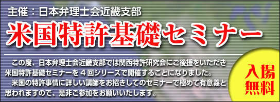 お問い合せ | 日本弁理士会近畿支部 米国特許基礎セミナー申込係 TEL 06-6775-8200 ※平成23年3月1日以降 TEL06-6453-8200 |
