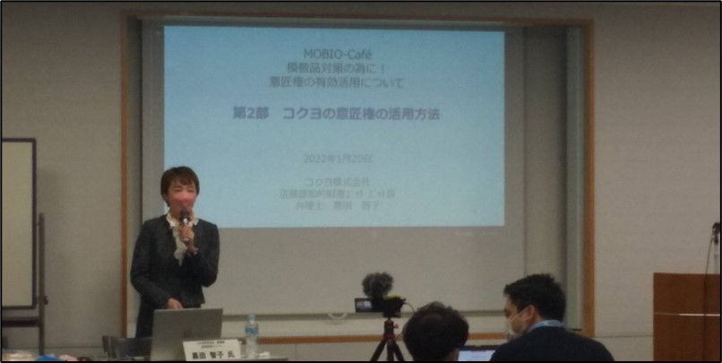 第2部の黒田先生は、コクヨ様が知財を経費でなく将来の投資と捉えるようになった経緯、そして、なぜ意匠権を選択し、どのように活用しているのか、について説明されました。普段はなかなか聞くことができない内容であり有意義であったと思われます。