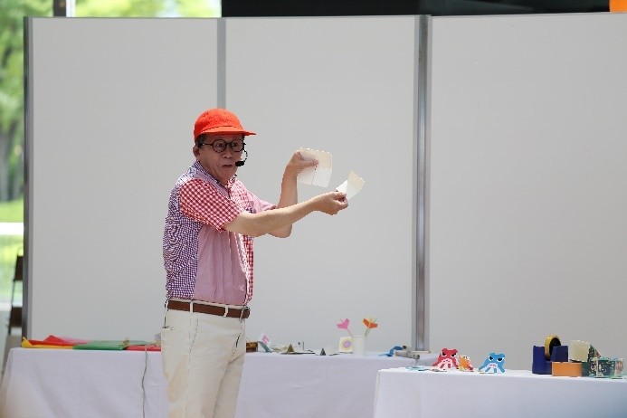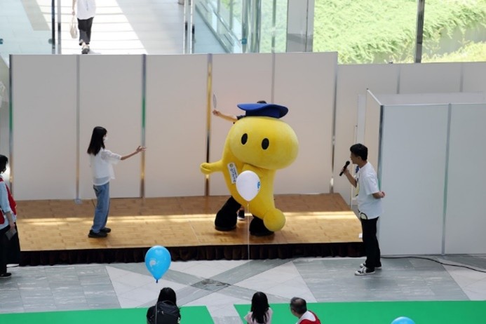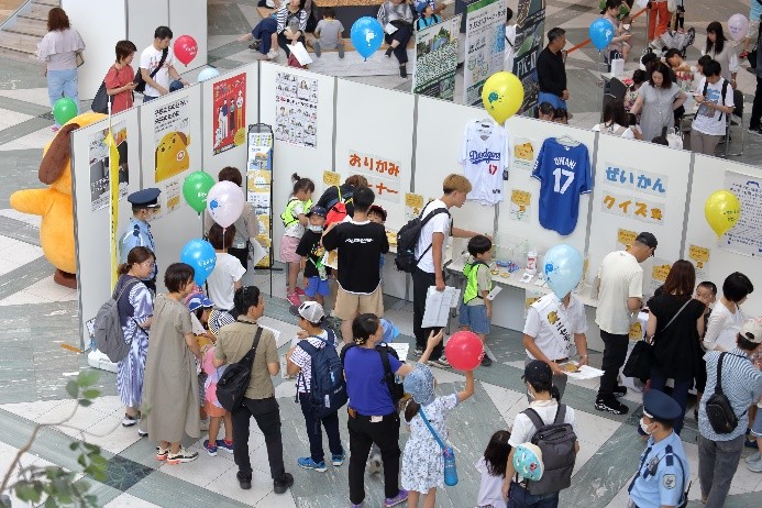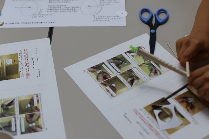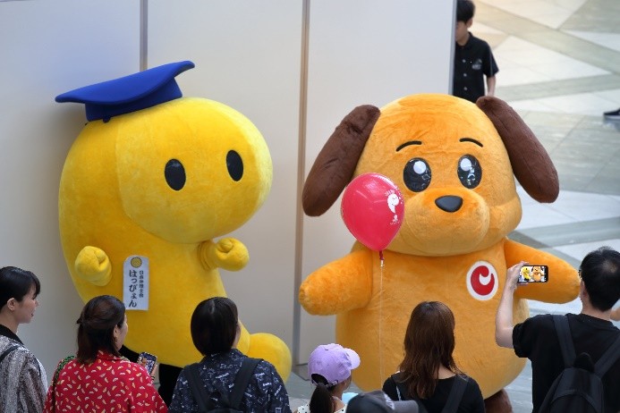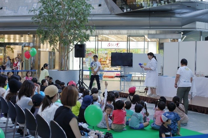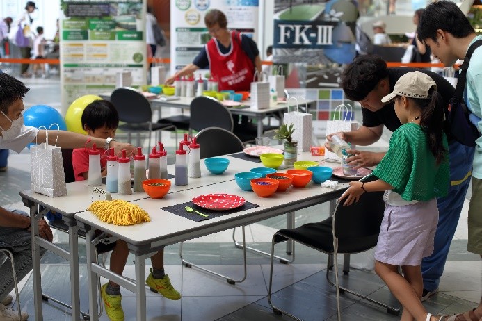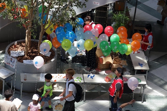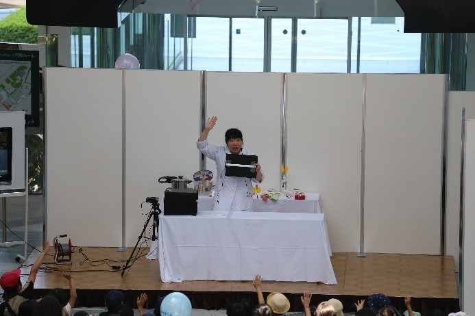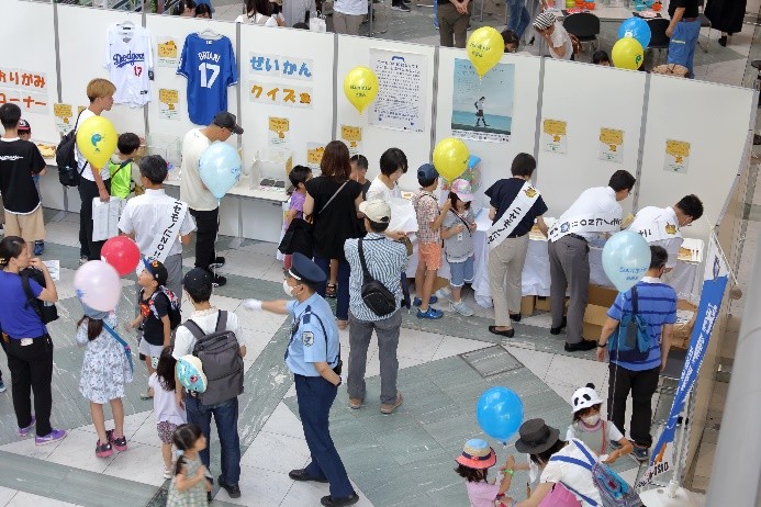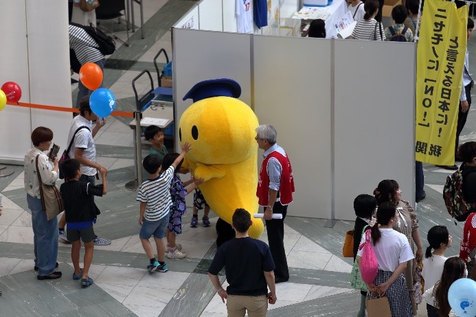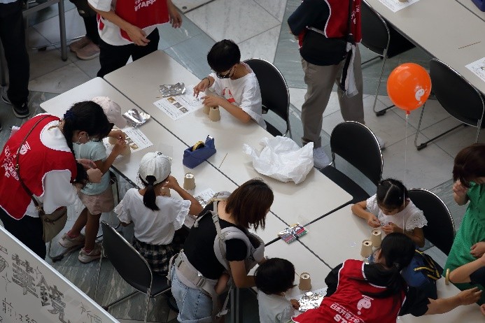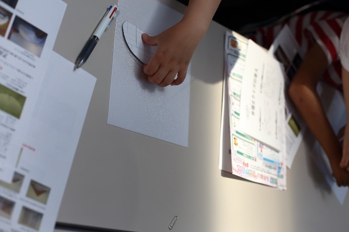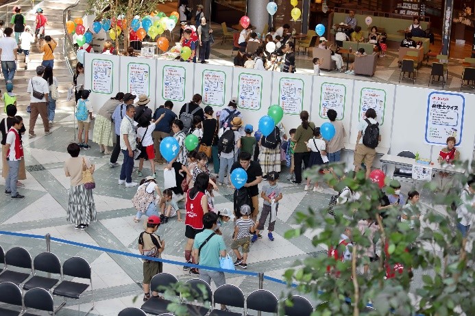 7月1日の「弁理士の日」を記念して、令和6年7月6日(土)にツイン21アトリウムにおいて「知財ふれあいフェスティバル」を開催しました。令和元年度以来、5年ぶりの当会場での開催となりました。イベント当日は、心配していた降雨はなく、とても暑い日でしたが、多くの方にご来場いただき、大変盛況なフェスティバルとなりました。(文責:三方 英美) ![]() ![]() [B]サイエンスショー 講師は、関西会の吉岡亜紀子会員が担当し、「手作りでんきの大実験!」を合計3回披露していただきました。コイルと磁石を使ったり、プラスチックのパイプをタオルでこすったりして手作りしたでんきで、LEDや蛍光灯を光らせたときには、子どもたちから歓声があがり、吉岡会員の問いかけにも大きな声で応えてくれていました。モータの回転軸に取り付けたファンをうちわや手持ち扇風機、蒸気等で回転する実験では、手作りでんきでオルゴールが見事に鳴り響き、大変盛り上がり、子ども達だけでなく大人の方も存分に楽しんで頂きました。(文責:東山 香織) ![]() ![]() [C]はっぴょんとのじゃんけん大会 参加者(小学生以下)がステージに上り、はっぴょんと1対1でじゃんけんを行いました。じゃんけんは、はっぴょんのアテンド役が団扇を使って行いました。参加された方には、記念品としてエコバッグをプレゼントしました。参加枠は50名で、募集を開始してすぐに〆切となりました。(文責:中野 賢太) ![]() ![]() <Ⅱ フロアパート> [D]サンドアート体験(藤野興業株式会社) 藤野興業株式会社様にご協力いただき、サンドアート体験を実施しました。サンドアート体験は、サボテンを一つ選び、透明のガラス瓶にサボテンを入れ、その周りに色とりどりのびんから生まれたガラス砂(ガラスサンド)を敷き詰めてオリジナルのボトルアートを作ります。 各テーブルでは、藤野興業株式会社様のスタッフの方に作り方を教えてもらいながら、子供たちが熱心に思い思いのガラスサンドを瓶に敷き詰めてサンドアートの制作を楽しんでいました。時間をかけて細かく模様を作る子や大きな模様を作る子など、完成した作品はどれも子供たちの個性が感じられる作品に仕上がっていたのではないかという印象です。完成した作品は袋に入れ、安全に持って帰れるようにしていただきました。また、ガラス瓶回収からガラスサンドができるまでや、できたガラスサンドがどのように使用されているか等を説明したパネルも展示していただきました。(文責:新坂 直子) ![]() ![]() [E]展示ブース(大阪税関) 大阪税関のブースでは、真正品と模倣品を展示して模倣品はどちらかを当てるクイズや折り紙コーナーを設けて頂きました。大阪税関のイメージキャラクターであるカスタム君のガチャには多くの子供たちが並び、何色のバッチが当たるか楽しんでいました。写真撮影ができる顔出しパネルも展示して頂きました。今年もカスタム君に登場して頂きました。(文責:塚本 真由子) ![]() ![]() [F]クイズコーナー 「日本弁理士会関西会」の風船を参加賞としたクイズを実施しました。発明や特許制度、弁理士についてのクイズを親子で話し合いながら回答してもらうことで、知財への関心を高めてもらうきっかけとなりました。親子連れの来場者のほぼすべてが参加し、昨年を大きく上回る個数の風船を配布できました。風船を手にした子供たちは笑顔になり、会場全体も色とりどりの風船で華やいで、イベントへの演出効果も高かったと思われます。(文責:泉谷 透) ![]() ![]() [G]発明工作教室 万華鏡 「万華鏡」の工作は、小学校低学年をターゲットにしたコンテンツですが、更に年少の子どもであっても短い時間で「できた」という実感を得ることができるため、例年人気です。出来上がったものを想像しやすかったからか、多くの子どもたちに「万華鏡をつくりたい」と思ってもらえたようで、長蛇の列ができました。 子どもたちは期待通り、集中して作品を作成していました。用意された多色ペンを使って大事そうに仕上げていく姿や、講師のアドバイス通りに、出来上がった万華鏡で色々な光を覗いた後に見せる驚きや満足げな表情に、講師を含む運営スタッフ側も皆、充実感を覚えたと思います。分かりやすい言葉で工作の内容を説明したり、原理や応用について保護者の方から質問を受けたり、弁理士が講師をする意義も感じることができました。 ツイン21アトリウムでの実施は令和元年度以来でしたが、そのときに運営に参加されていた経験豊富な委嘱講師と委員に担当していただけたため、準備の不備から道具が不足してしまったタイミングも臨機応変な対応で事なきを得て、大変助かりました。(文責:八木 まゆ) ![]() [H]発明工作教室 がりがりトンボ 「がりがりトンボ」の発明工作教室では、割りばし側面の表面に棒やすりでギザギザを作成して、割りばし先端に紙で作成した円形のプロペラを画鋲で固定することで「がりがりトンボ」を作成します。割りばしのギザギ